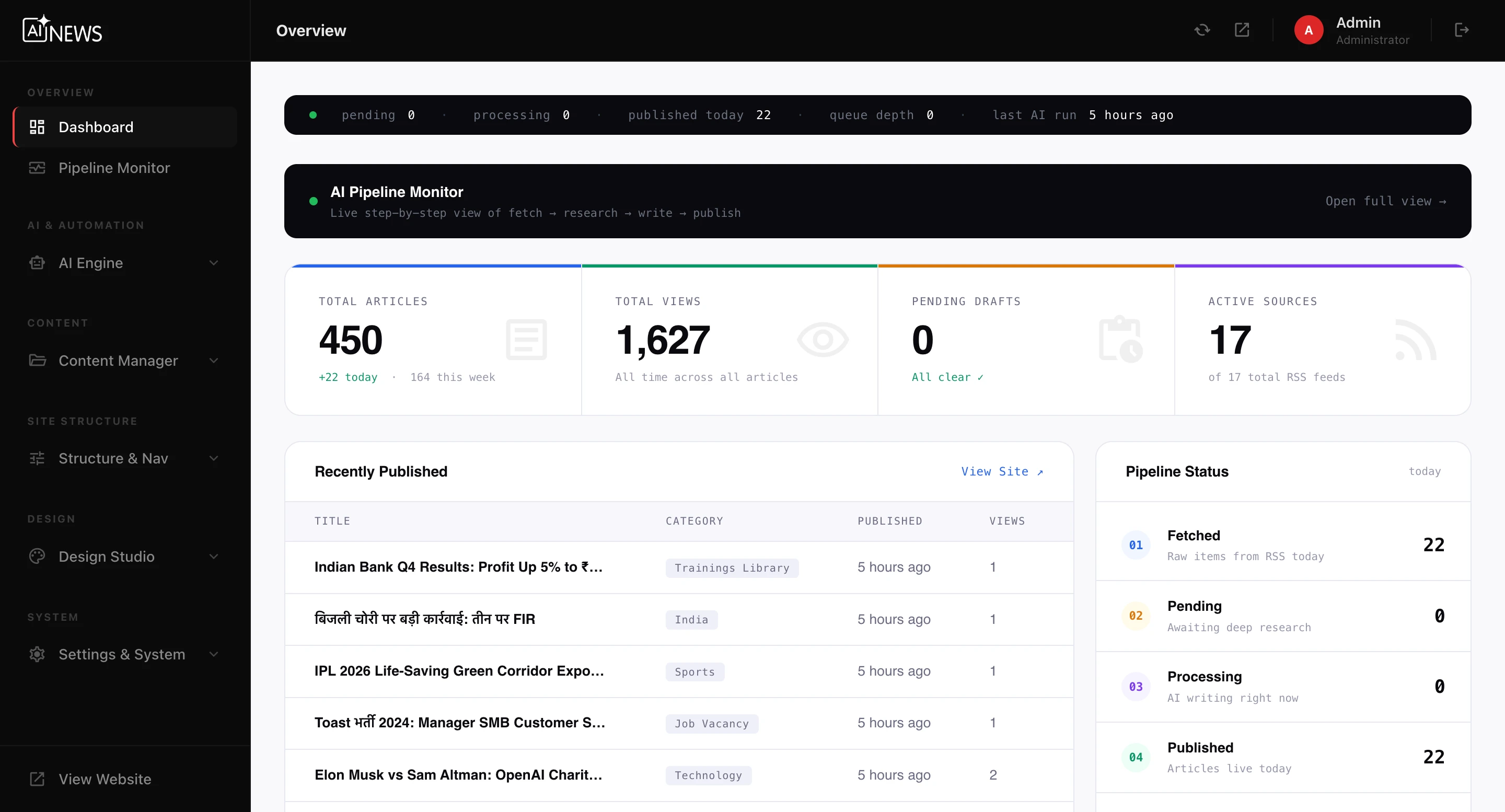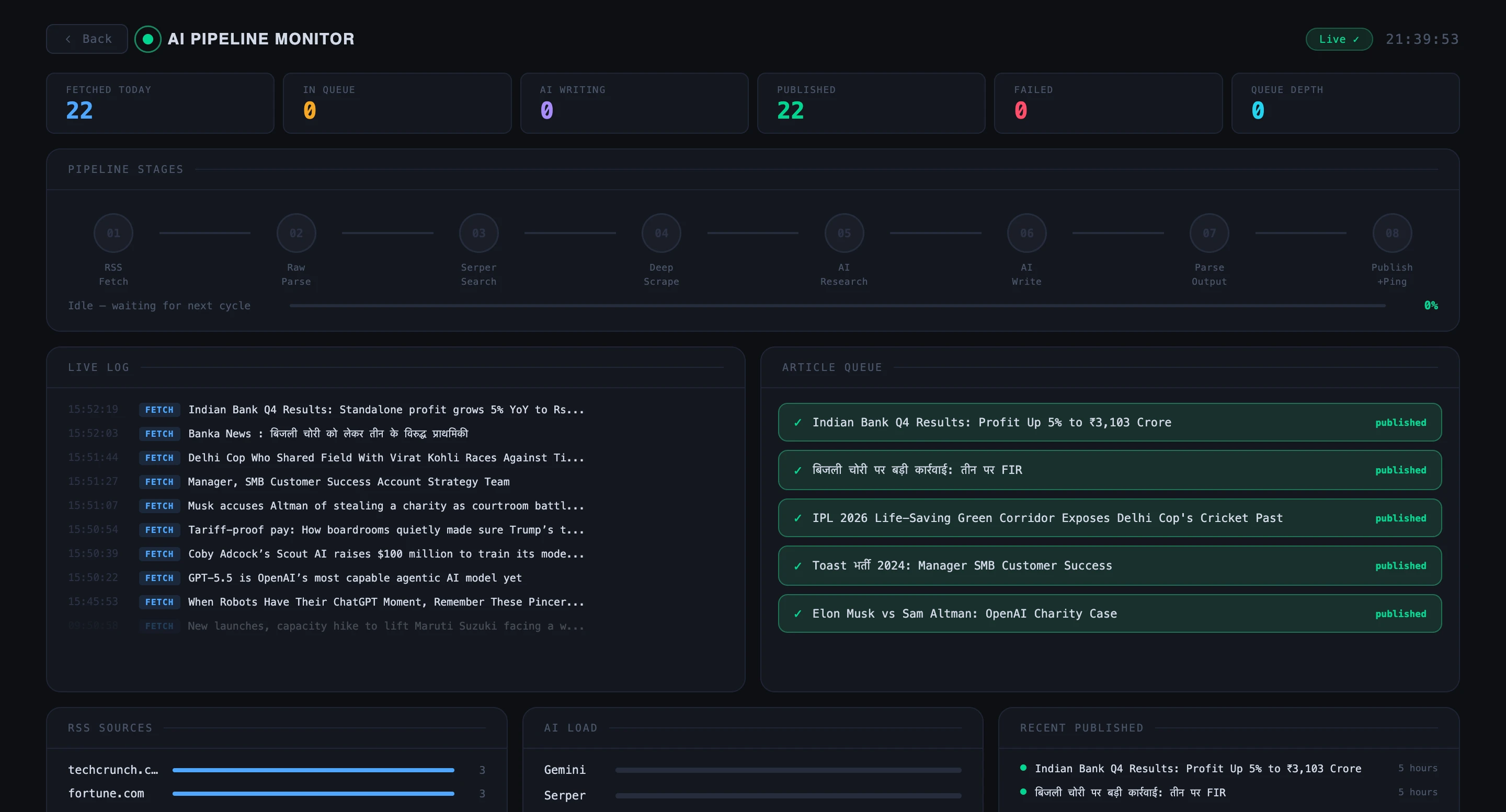 This platform is a next-generation, fully automated news publishing system designed to streamline content creation, optimize SEO, and scale digital media operations with minimal human intervention. It combines RSS aggregation, advanced AI research, and automated publishing into a single intelligent ecosystem.